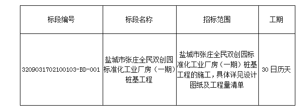 本招標(biāo)項(xiàng)目鹽城市張莊全民雙創(chuàng)園標(biāo)準(zhǔn)化工業(yè)廠房已由鹽城市鹽都區(qū)發(fā)展和改革委員會(huì)以關(guān)于鹽城市張莊全民雙創(chuàng)園建設(shè)投資有限公司建設(shè)張莊全民雙創(chuàng)園標(biāo)準(zhǔn)化工業(yè)廠房項(xiàng)目備案的通知-都發(fā)改審(2016)281號批準(zhǔn)建設(shè)。招標(biāo)人為鹽城市張莊全民雙創(chuàng)園建設(shè)投資有限公司,工程所需資金來源自籌。項(xiàng)目已具備招標(biāo)條件,現(xiàn)對該項(xiàng)目的鹽城市張莊全民雙創(chuàng)園標(biāo)準(zhǔn)化工業(yè)廠房(一期)樁基工程進(jìn)行公開招標(biāo)。本次招標(biāo)對投標(biāo)報(bào)名人的資格審查,采用資格后審方法選擇合格的投標(biāo)申請人參加投標(biāo)。
