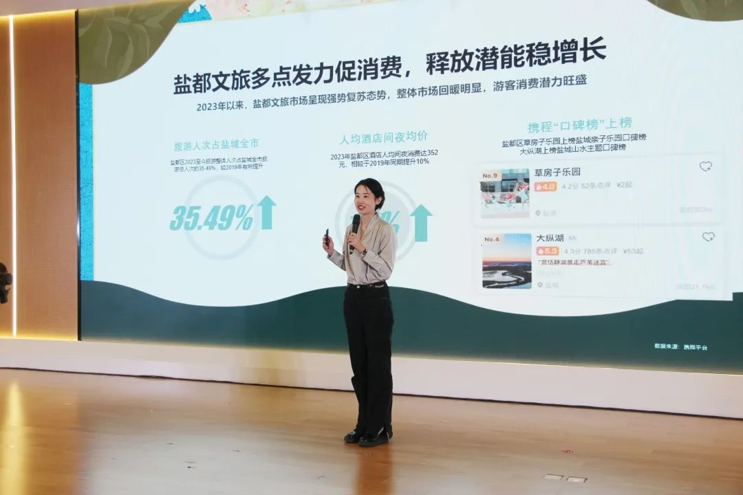 在推介會上,攜程集團政府合作部項目總監(jiān)王焱發(fā)布“鹽都文旅及攜程集團2023年戰(zhàn)略合作”重點內容,深度剖析雙方未來合作的藍圖。她提到,2023年以來,鹽都文旅市場呈現強勢復蘇態(tài)勢,整體市場回暖明顯。攜程一直都是鹽城文旅發(fā)展道路上堅實的合作伙伴。去年雙方共同打造的“到鹽城·嗨周末”品牌獲評文旅部2022年旅游宣傳推廣優(yōu)秀案例。而今年,攜程將繼續(xù)深耕鹽城文旅,在全市文旅資源的加持之下,依托2023年攜程集團振興A計劃開拓區(qū)縣合作,與鹽都文旅建立戰(zhàn)略合作關系,協(xié)同并進共育花開。攜程集團將聚合站內外流量資源,從產品、營銷、消費三大層面開足馬力驅動文旅建設加速度,“串珠成鏈”,多措并舉推動鹽都文旅造就高質量發(fā)展格局。