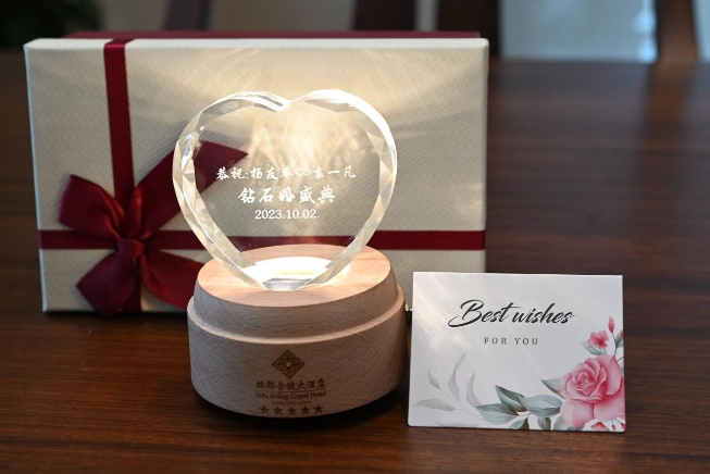 活動現(xiàn)場,一組組照片滿載著恩愛之情、感激之意和幸福之聲,記錄了這對恩愛夫婦的愛情故事,喚起了大家美好的回憶。酒店總經(jīng)理封光雄送上紀念品和誠摯祝福,并與賓客一起合影紀念。特色禮物與互動活動既體現(xiàn)了酒店“細意濃情,體驗金陵”的經(jīng)營理念,又增進了與賓客之間的情感聯(lián)系。驛都金陵大酒店將不斷創(chuàng)新進取,以精致服務(wù)為賓客提供獨特舒適的體驗,不斷提升酒店口碑和品牌形象。