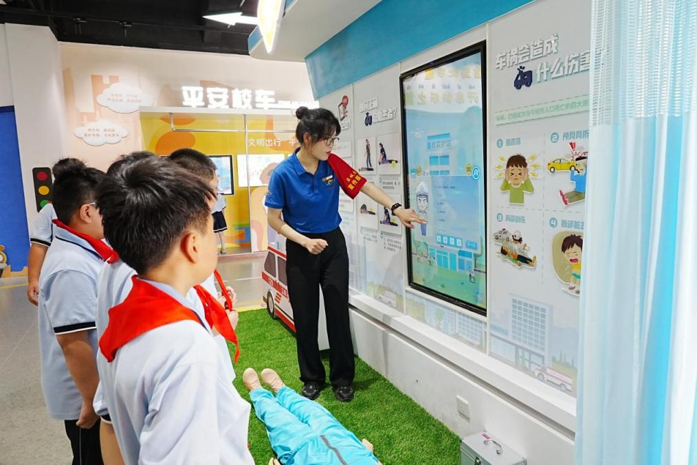 直播鏡頭下,油麻地小學教室內(nèi)外變成交通安全大舞臺。 教室內(nèi),民警通過通俗易懂的語言和啟發(fā)式教學引導同學們在日常生活中遵守交通法規(guī)。教室外,孩子們通過踢毽子、滾鐵環(huán)等趣味游戲輕松掌握交通法規(guī)知識。在交通安全實景體驗館內(nèi),主持人帶領學生們體驗不同場景下復雜多變的交通狀況,孩子們坐上基地“頂流”“育才號”校車,通過校車模擬駕駛艙、VR眼鏡沉浸式感受實景駕駛。
