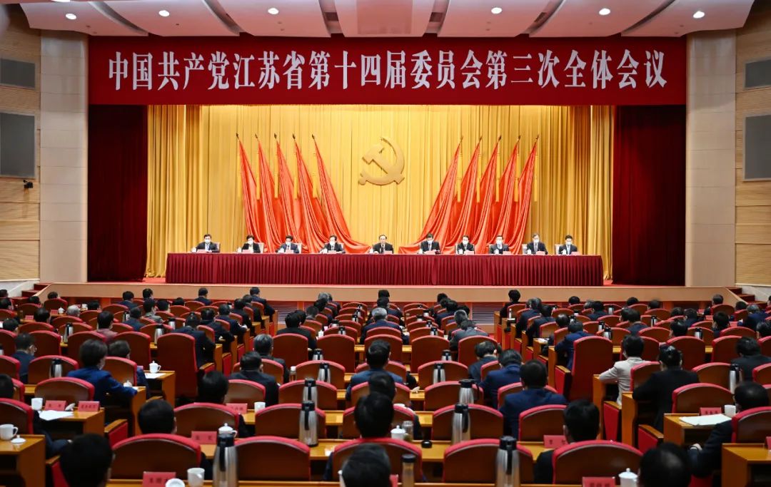 11月29日,中國(guó)共產(chǎn)黨江蘇省第十四屆委員會(huì)第三次全體會(huì)議在南京召開(kāi)。全會(huì)高舉習(xí)近平新時(shí)代中國(guó)特色社會(huì)主義思想偉大旗幟,全面貫徹落實(shí)黨中央部署要求,總結(jié)省委十四屆一次全會(huì)以來(lái)的工作,對(duì)我省深入學(xué)習(xí)宣傳貫徹黨的二十大精神進(jìn)行全面部署,動(dòng)員全省上下更加深刻領(lǐng)悟“兩個(gè)確立”的決定性意義,堅(jiān)定擁護(hù)“兩個(gè)確立”,堅(jiān)決做到“兩個(gè)維護(hù)”,牢記“三個(gè)務(wù)必”,弘揚(yáng)偉大建黨精神,緊緊圍繞新時(shí)代新征程黨的使命任務(wù),全面推進(jìn)中國(guó)式現(xiàn)代化江蘇新實(shí)踐,更好扛起“爭(zhēng)當(dāng)表率、爭(zhēng)做示范、走在前列”光榮使命,奮力譜寫(xiě)“強(qiáng)富美高”新江蘇現(xiàn)代化建設(shè)新篇章,為全面建設(shè)社會(huì)主義現(xiàn)代化國(guó)家、全面推進(jìn)中華民族偉大復(fù)興作出江蘇新的更大貢獻(xiàn)。